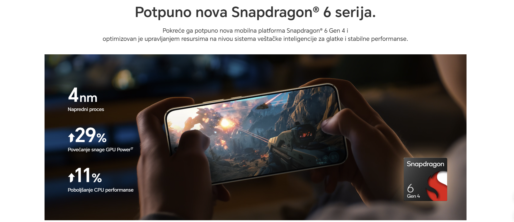 | Tip procesora | Qualcomm Snapdragon 6 Gen 4 (4 nm) |