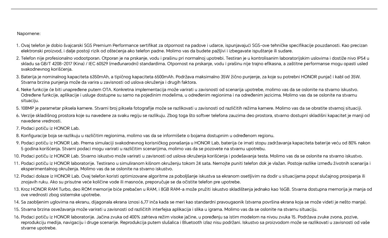 | Naziv i vrsta robe | Honor X7d 6GB + 128GB, Meteor Silver Mobilni telefon |