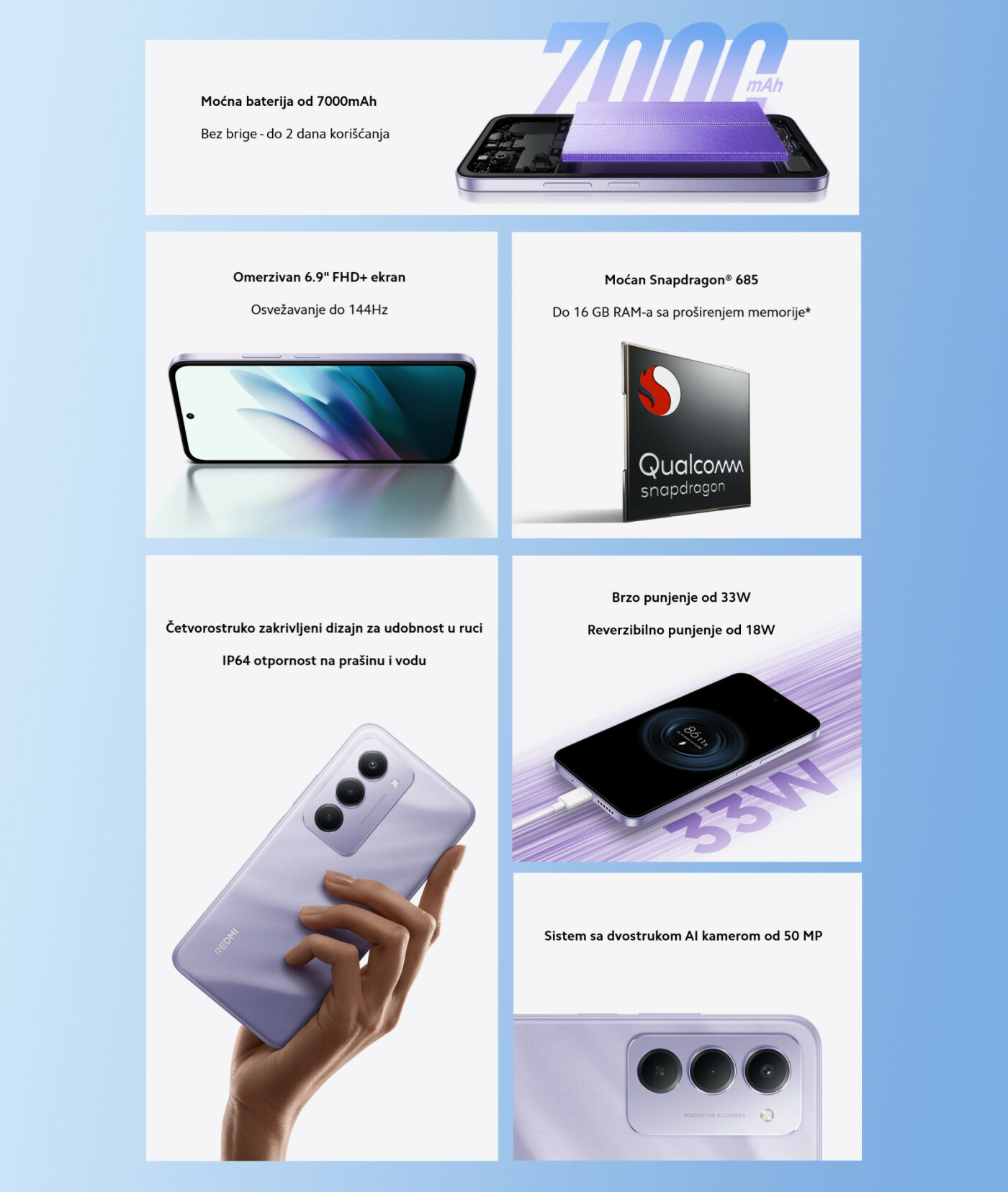 | Naziv i vrsta robe | Xiaomi Redmi 15 6GB + 128GB, Titan Gray Mobilni telefon |