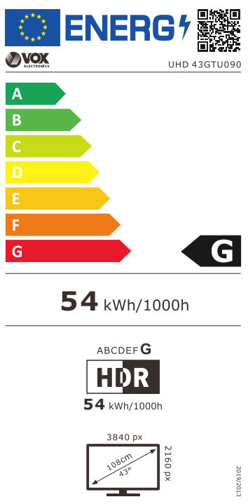 | Naziv i vrsta robe | VOX UHD TV 43GTU090, 4K Ultra HD, Frameless GOOGLE TV, DVB-T2/C/S2, Googlecast, Dolby Audio |