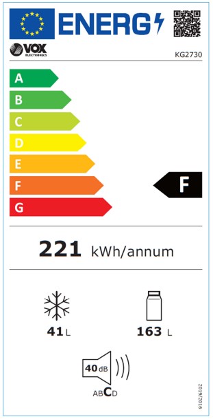 | Naziv i vrsta robe | Vox kombinovani frižider KG 2730 E, Statički, 204 l, beli |