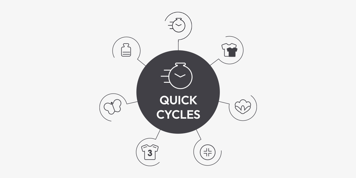 Ekskluzivna Quick&Clean tehnologija meša vodu i deterdžent u jedan, visoko koncentrisani rastvor. Mašina prska rastvor u bubanj pod mlazom visokog pritiska, koji duboko prodire u vlakna tkanina. Ova nova tehnologija povećava snagu pranja i tako omogućava snižavanje normalne temperature pranja: možete postići rezultate pranja od 40° na 20°, 60° rezultata na 40°, kao i dubinsko čišćenje jako zaprljane odeće na 60°.