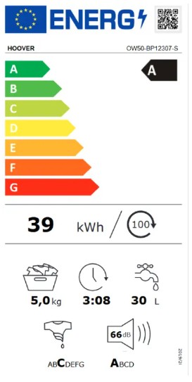 | Naziv i vrsta robe | Hoover inverter mašina za pranje veša OW50-BP12307-S, Frontload, 5 kg, 1200 rpm, bela |