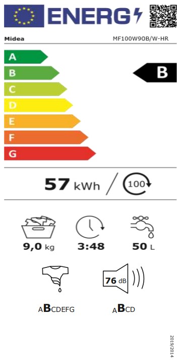 Midea veš mašina MF100W90BA/W-HR – 9 kg