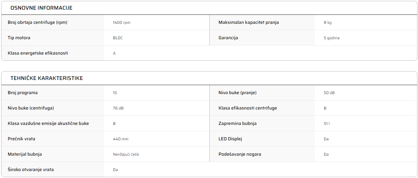 | Naziv i vrsta robe | Vox mašina za pranje veša WMI1480-T15A |
