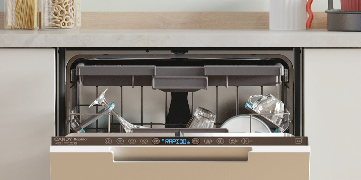 Nova Candy Rapido mašina za pranje sudova poseduje ciklus od 49 minuta, koji će savršeno oprati polovinu kapaciteta posuđa, smanjujući potrošnju.