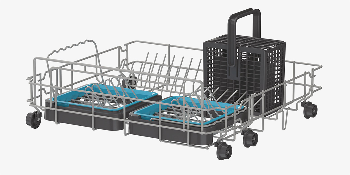 Naša nova pametna korpa sada je opremljena novim sklopivim policama, koje vam omogućavaju da ih povlačite gore ili dole da biste dobili više prostora za svoje posuđe na najpametniji mogući način. Vaše posuđe, pa čak i najteži predmeti nikada nisu bili lakše oprani.