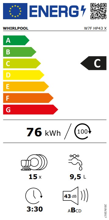| Naziv i vrsta robe | Whirlpook mašina za pranje sudova W7F HP43 X, 15 kompleta, inox |