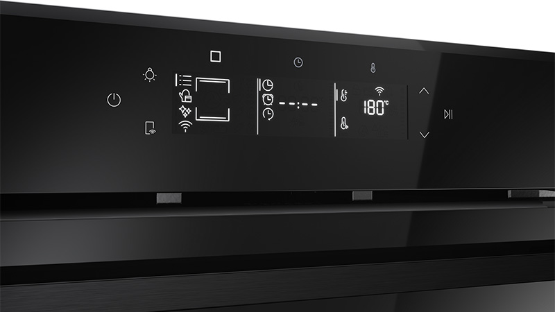 Upravljanje procesom kuvanja je još intuitivnije, zahvaljujući novom premium korisničkom interfejsu: LCD ekran je podeljen na tri odeljka i dizajniran je da na najlakši način upravlja funkcijama, temperaturom i vremenom kuvanja. A ukoliko želite da proverite status hrane, zahvaljujući funkciji povezivanja to možete učiniti direktno sa pametnog telefona ili tableta.