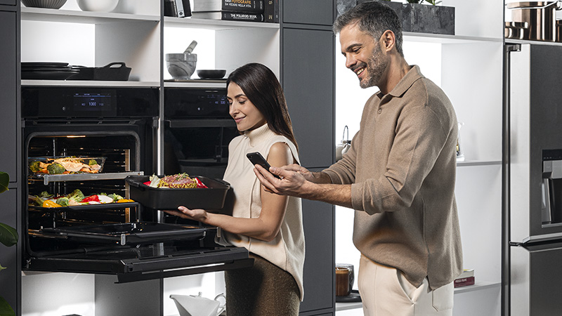 Upravljanje procesom kuvanja je još intuitivnije, zahvaljujući novom premium korisničkom interfejsu: LCD ekran je podeljen na tri odeljka i dizajniran je da na najlakši način upravlja funkcijama, temperaturom i vremenom kuvanja. A ukoliko želite da proverite status hrane, zahvaljujući funkciji povezivanja to možete učiniti direktno sa pametnog telefona ili tableta.