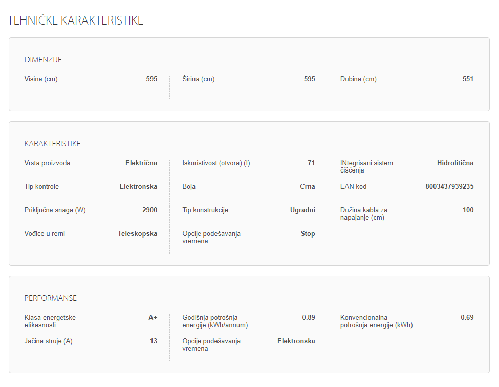 | Naziv i vrsta robe | Whirlpool ugradna rerna OMK58HU1B |