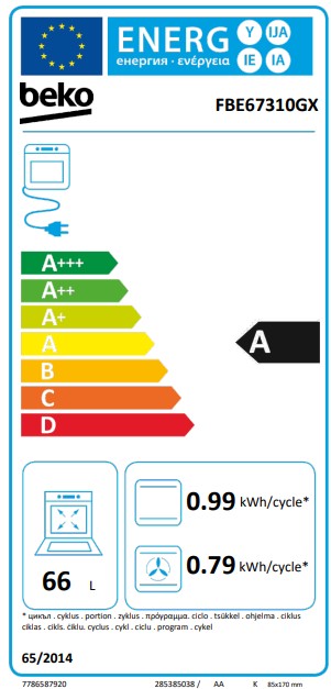 | Zapremina rerne | 66 l |