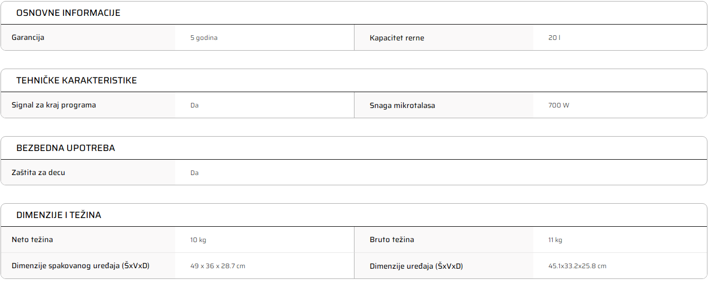 | Naziv i vrsta robe | Vox mikrotalasna rerna MWH-M32B |