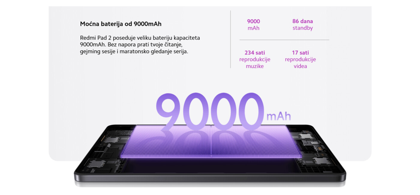 | Kapacitet baterije | 9000 mAh |